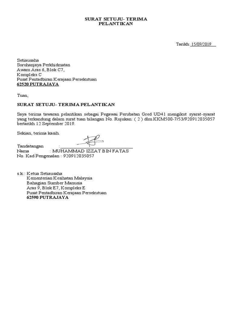 2 Contoh Surat Setuju Terima Rmt 2018 Pdf